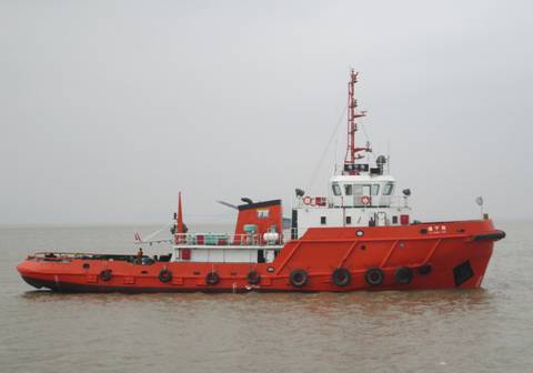 9月24号,南昌舰在“福宁拖”吊拖下经过几天的拖航后到达江苏太仓,由于海上航道比较宽阔可以在前面吊拖,但是进入长江后,江道的航道比较窄,同时为了加强舰体的安全操作性,我公司决定采用“福宁拖”绑拖形式进行拖带。