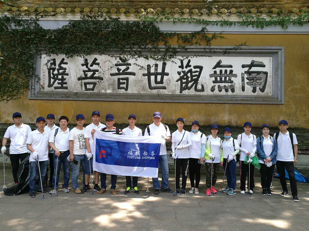 2017年5月20日,舟山福瑞船务有限责任公司全体员工在普陀山举行捡垃圾公益活动,公益活动重点地点在各个海滩和人群集中点。本次公益活动参加人员不仅有本公司职员,还有各界热爱公益的伙伴。