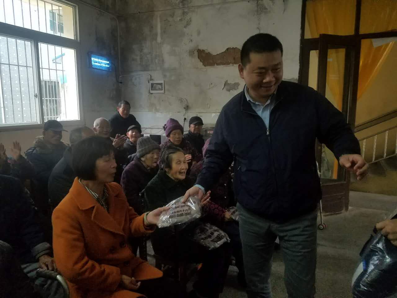 2017年12月1日礼拜五,舟山福瑞船务有限责任公司全体员工在芦花社区的协助下来到了舟山市勾山芦花社区敬老院慰问了敬老院内的五保老人。